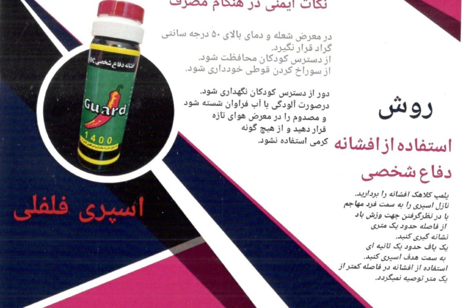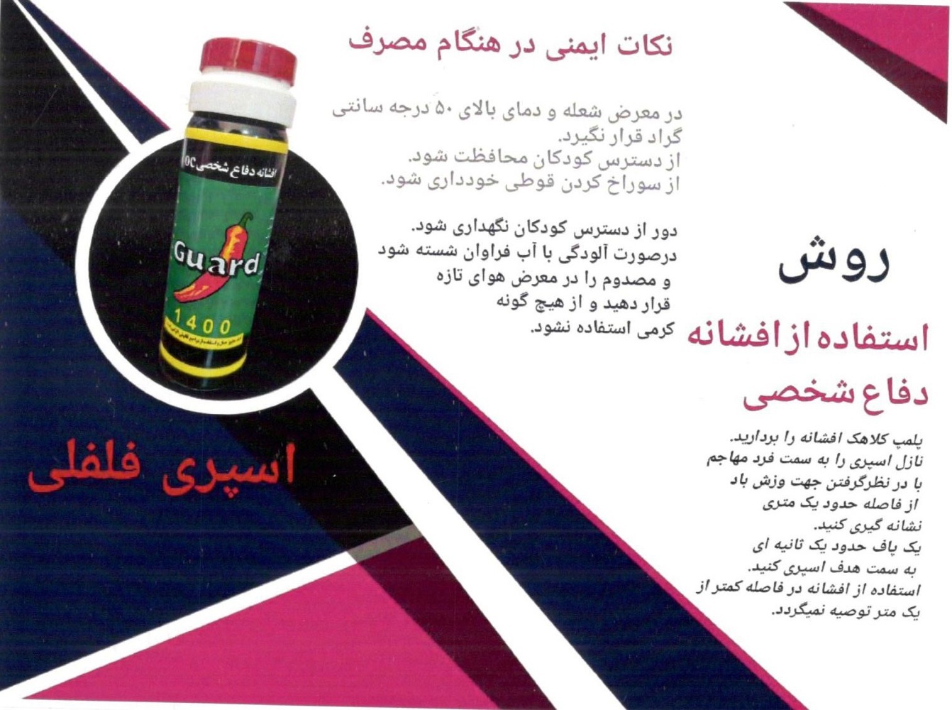 انواع تجهیزات دفاع شخصی شامل رعد 1 - 2 - 3 - 5 و افشانه از نوع اسپری فلفل میباشد.